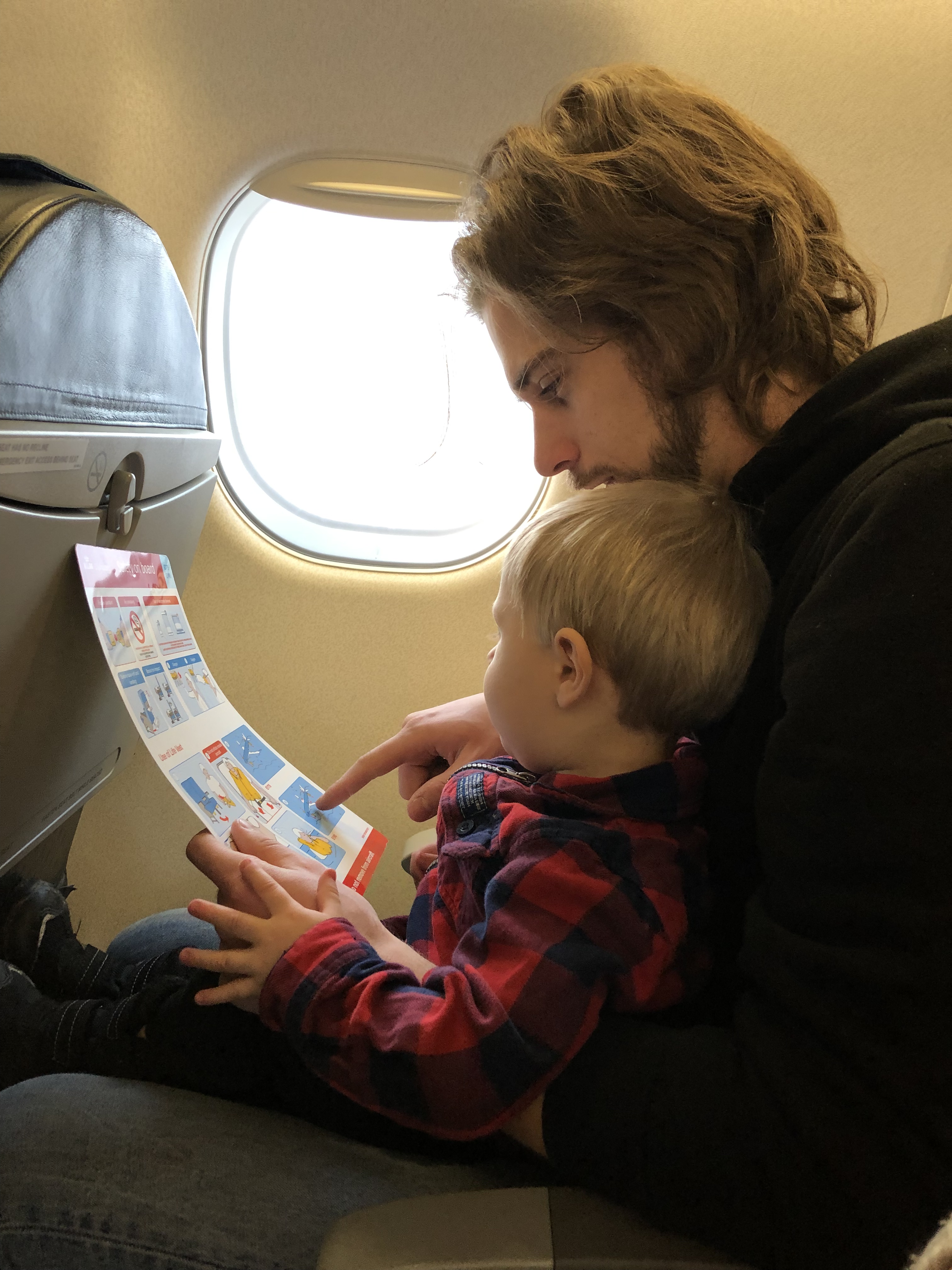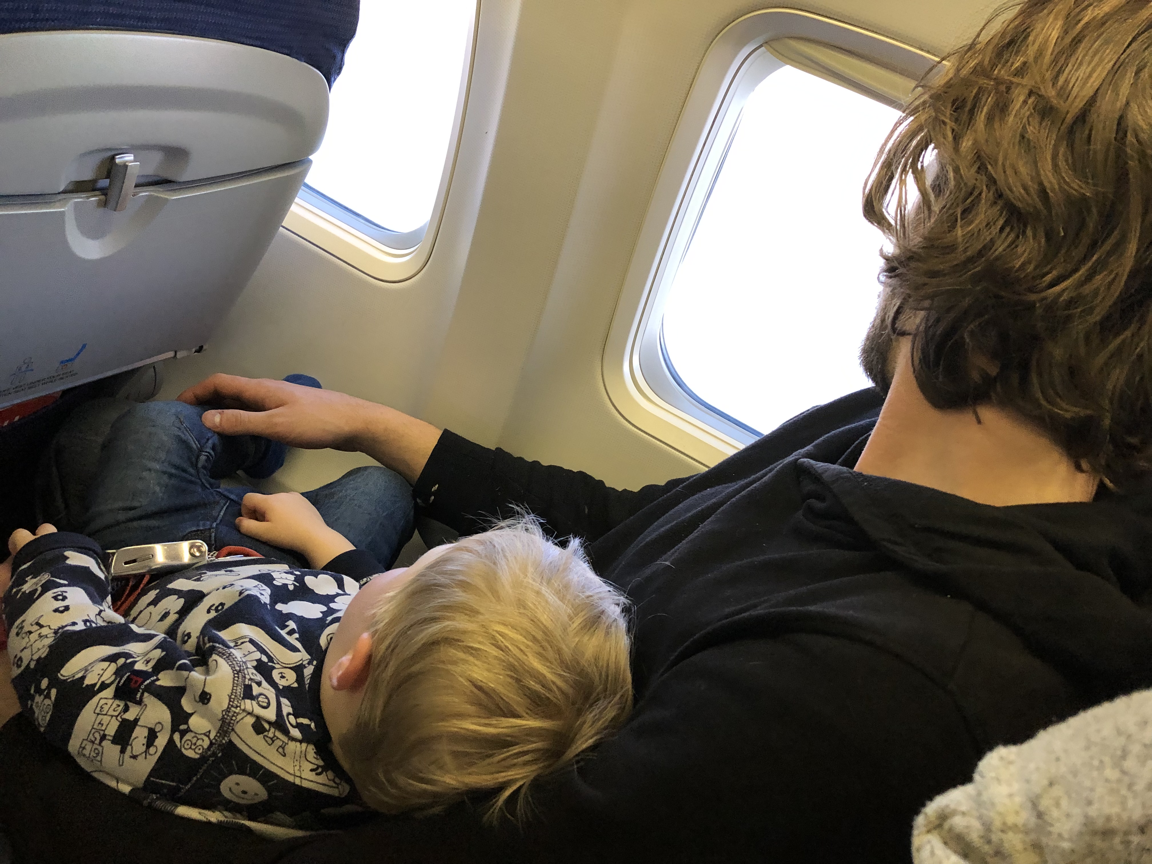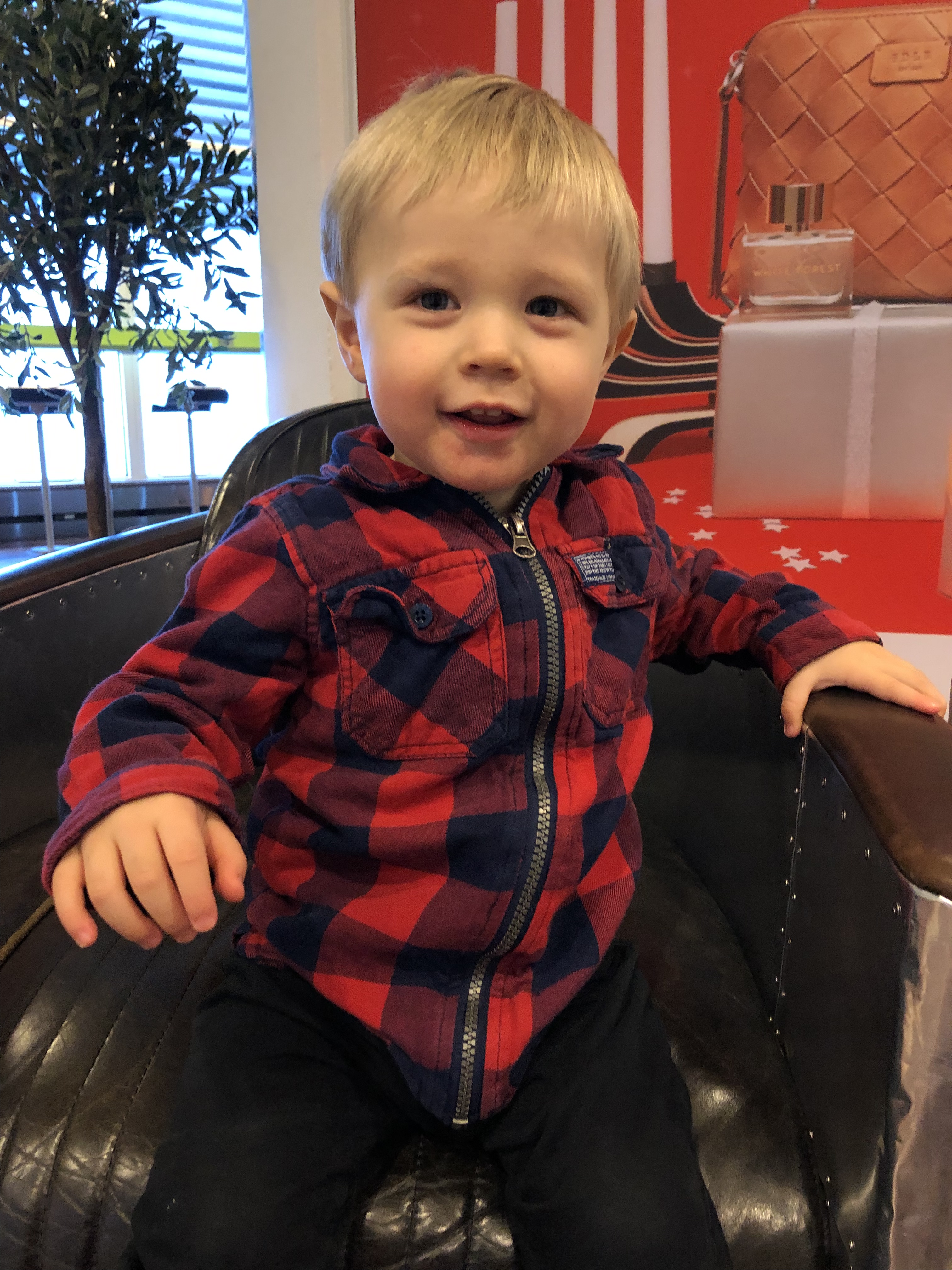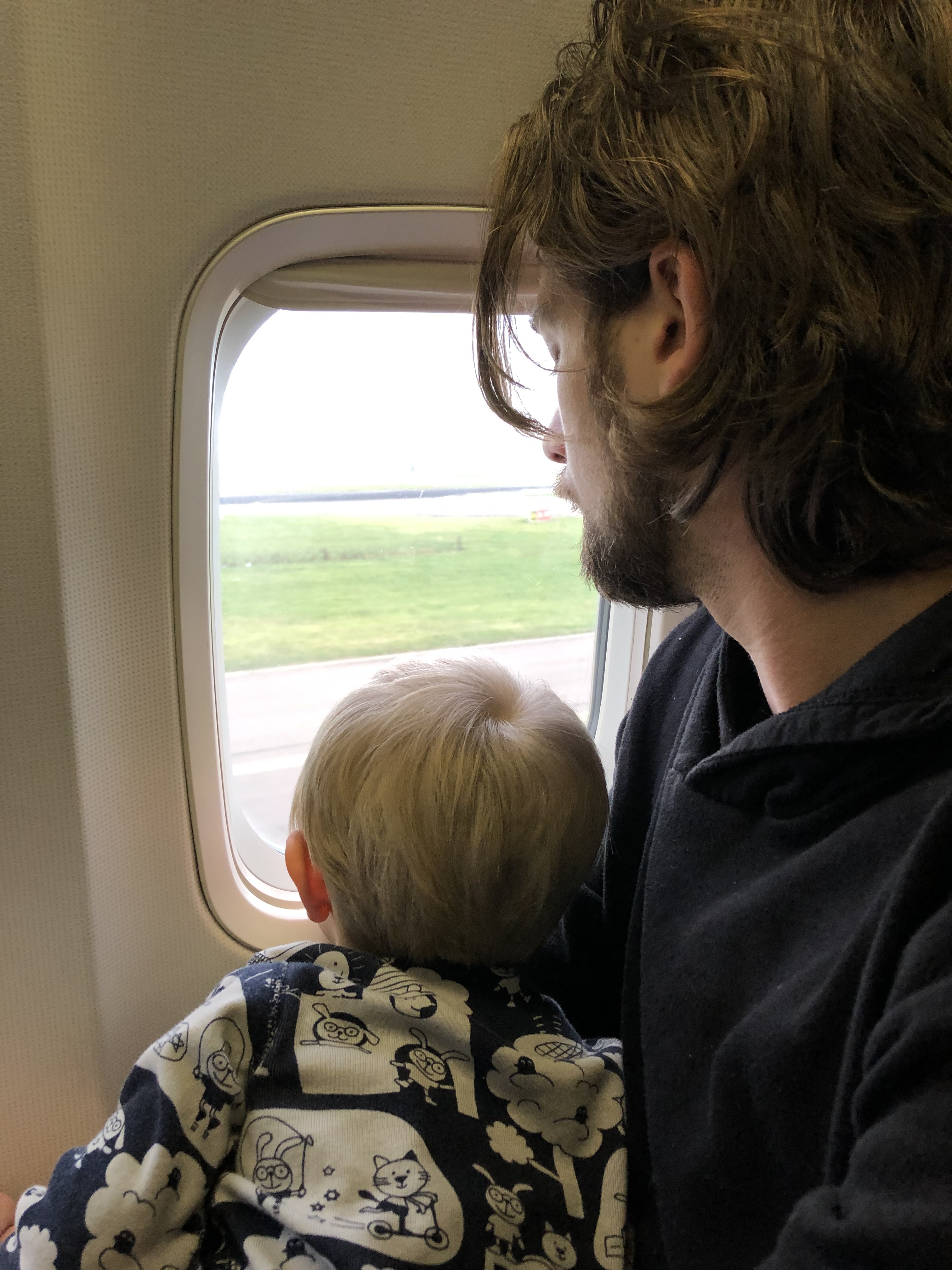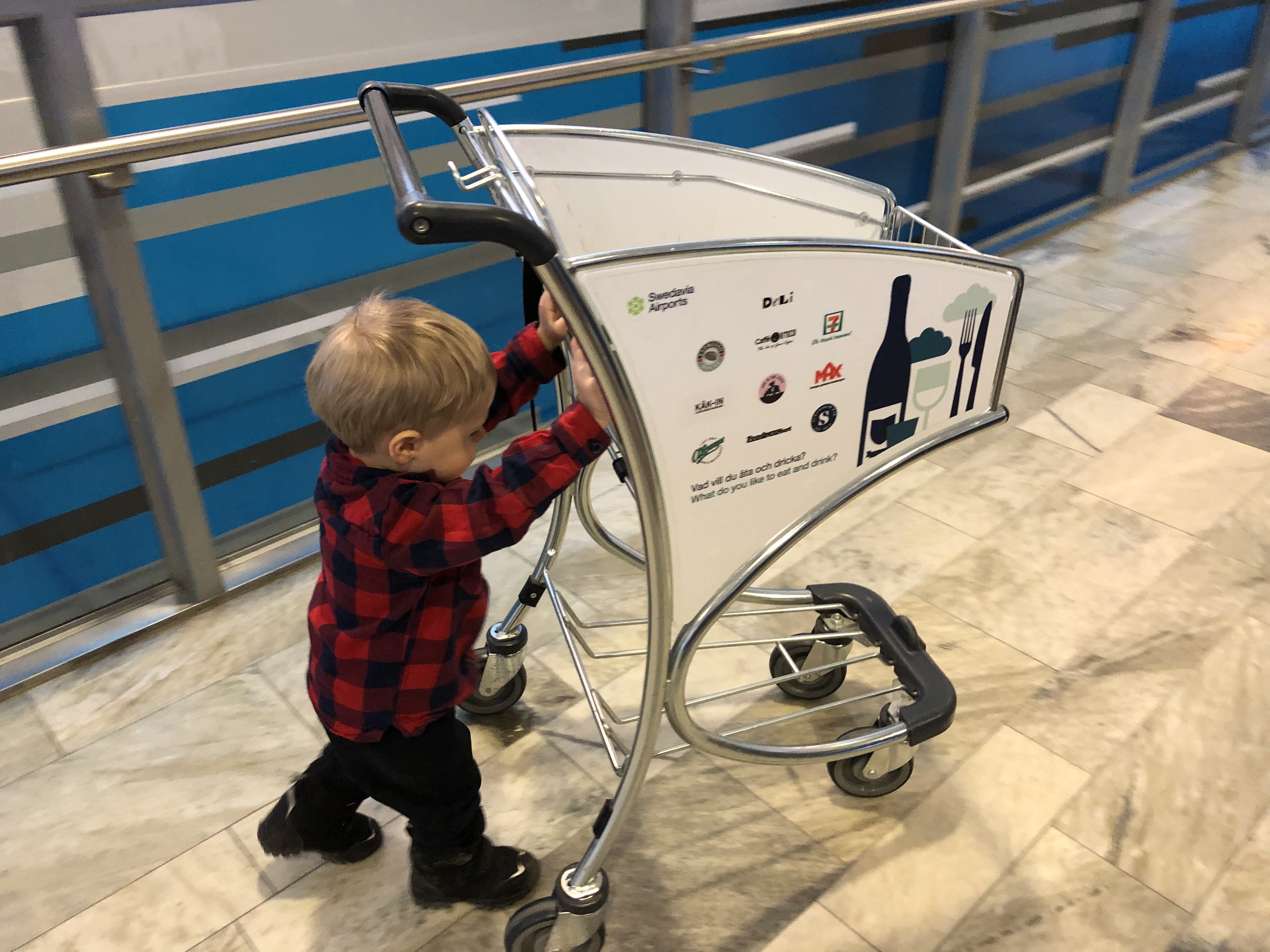 Lokes matburk blev analyserad och godkänd och hans väska genomletad efter våtservetter som lös lite extra på dataskärmen. Vid vår gate fick Loke springa omkring och sträcka på benen en stund. Charma flickor i cafét, prova stolar…