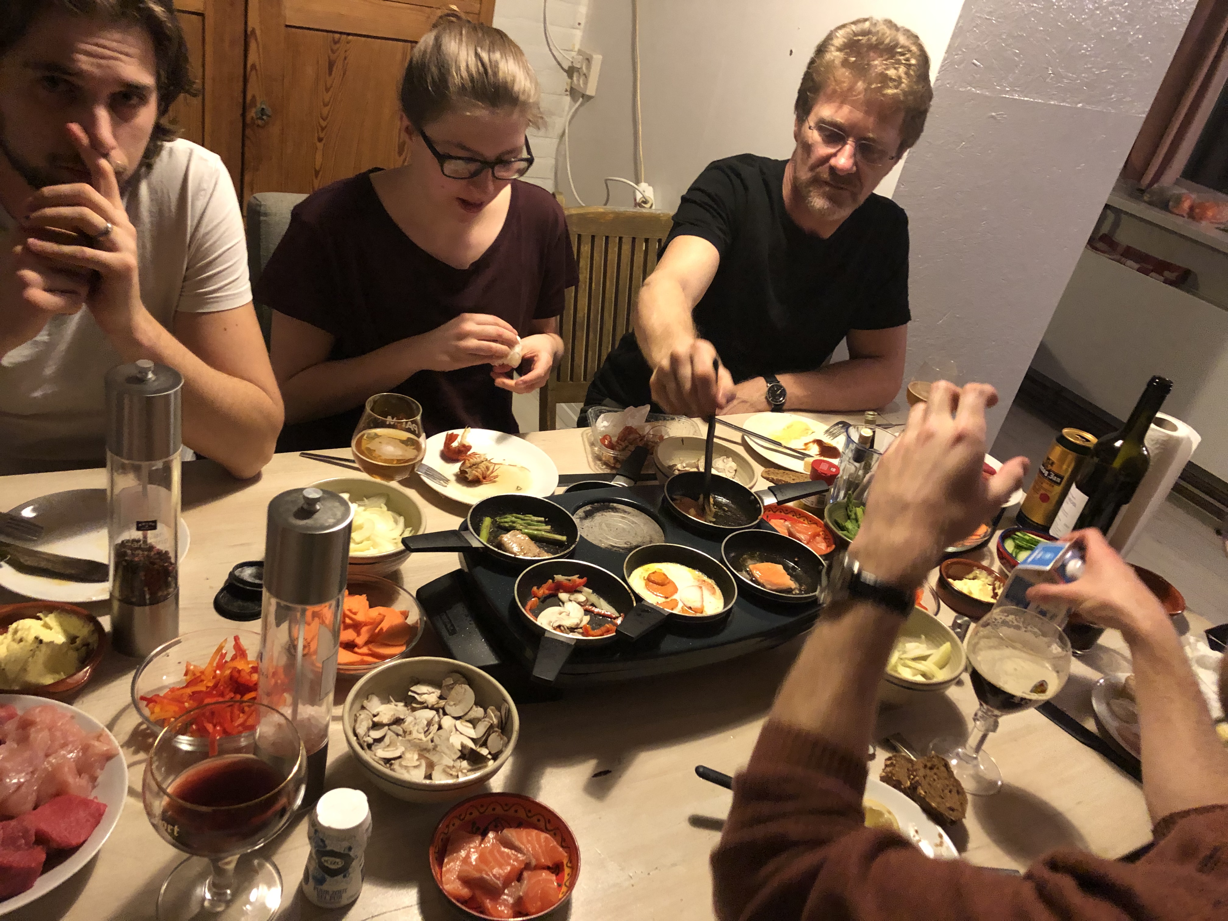 Dagen avslutades i stugan med mat, snacks och kortspel. Det mesta är nu packat inför morgondagens bilresa till Ventimiglia, Italien, där vi stannar en natt innan sista biten till Marseille och resans sista övernattning innan flyget hem.