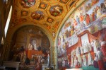 Till sist kom vi in i museet i alla fall, efter fyra timmars köande. Lyckligtvis glömde vi ganska snabbt bort vårt lidande när vi kom in i museet, där inne var det svalt och det fanns otroligt mycket att titta på. Lite för mycket nästan. Sixtinska kapellet var självklart huvudmålet och dit kom vi efter en lång ringlande promenad genom korridorer och olika rum, det ena mer utsmyckat med målningar än det förra. Inne i sixtinska kapellet var det mycket folk, och självklart fotoförbud. Otroligt vackra målningar som verkligen poppar ut ur taket, men för att lyckas ta in allt borde man egentligen lägga sig på rygg mitt i rummet och bara titta i en timme eller två.