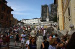 På lördagsmorgonen gick vi upp och åt frukost vid niotiden och direkt därefter traskade vi iväg mot Vatikanstaten på andra sidan floden. Vårt första mål för dagen var att ta oss in i Vatikanmuseet, men det visade sig vara aningens mer krävande än vi trott. När vi närmade oss kön för att ta oss in var vi ändå ganska kaxiga, trots att mängder av människor gick omkring med biljetter för ”skip the line” och hävdade att det skulle ta 3-4 timmar att ta sig in. Kön var lång, men i början gick det ganska snabbt och efter en timme hade vi kommit ganska långt. Sedan gick det tyvärr bara långsammare och långsammare och solen blev allt varmare och det fanns endast enstaka små träd här och var längs vägen som skänkte skugga. Men vi stod fast vid att vi skulle köa hela vägen, man kan ju inte ge upp när man kommit så långt?