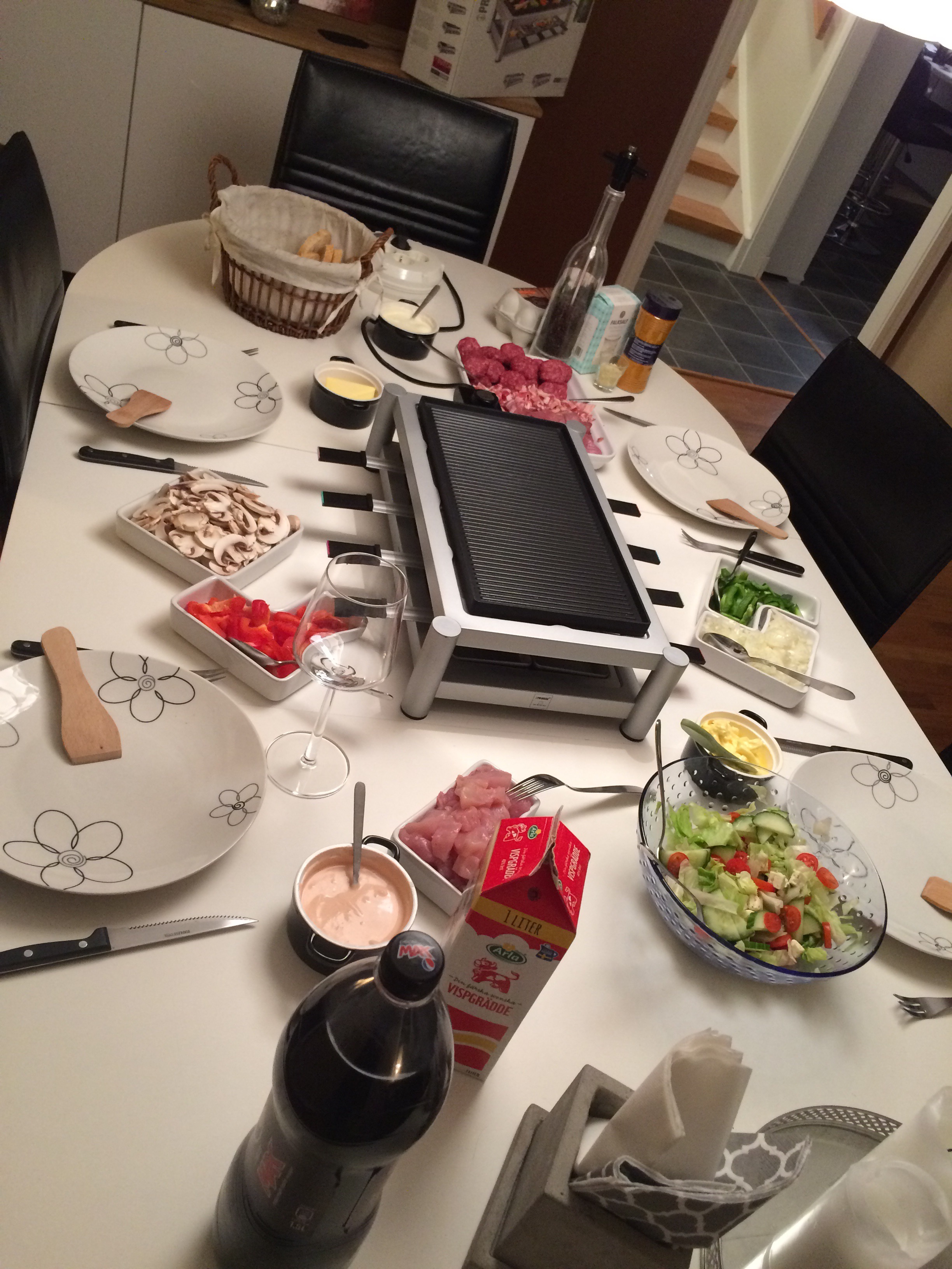 Hemma hos Camilla och Rasmus hjälptes vi sen åt att göra i ordning maten och sen satte vi oss till bords!