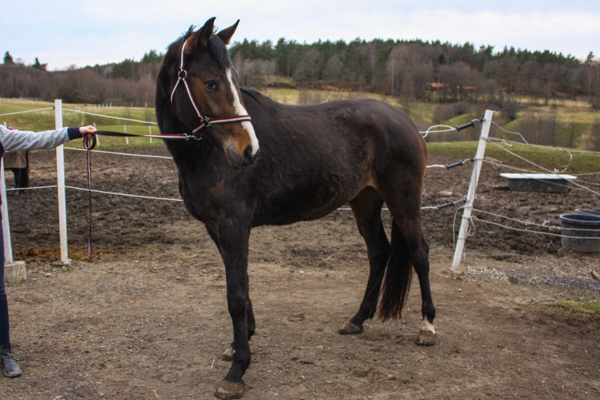 När jag först fick hem Kaprifol var hon mager och mycket muskelfattig och hennes hovar hade inte sett en hovslagare på ganska länge. Med tid och mycket mat blev hon dock fin relativt snabbt och vi kunde börja träna lite smått. När jag hämtade Kaprifol var hon endast van vid att ha träns och sadel på sig, hon var inte sutten på eller tränad på något annat sätt.