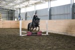 Väl framme hos Sofia och Stall HippoCampus hade hon lugnat sig och efter att ha fått stå i släpet en liten stund fick hon komma ut. Hon kände helt klart igen sen, hon bodde ju här mars-juli förra året. Vi gick runt lite och andades in atmosfären och sedan sadlade vi och gjorde i ordning henne för träning. Hon var lite spänd/nyfiken och pigg. När Sofia kom stod vi och pratade i säkert en halvtimme innan vi drog i gång med träningen så Kaprifol hann både slappna av och nästan somna. Kanske inte den bästa uppladdningen, men det var riktigt länge sen jag träffade Sofia nu så vi hade mycket att prata om!